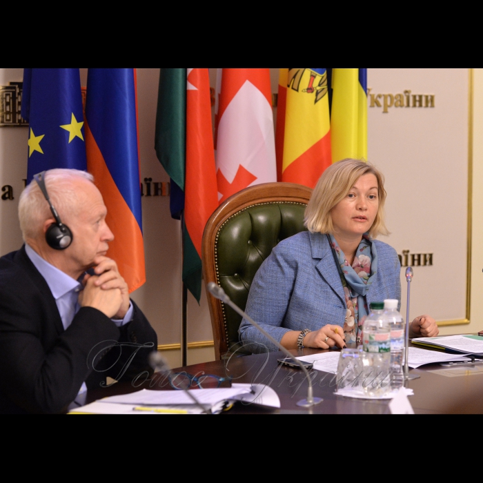 Ірини Геращенко Перший заступник Голови Верховної Ради України (праворуч), Міхал Боні співголова комітету з політичних питань, прав людини демократії ПА ЄВРОНЕСТ (Польща, ЕРР).31 жовтня 2016 спільне засідання Комітетів ПА ЄВРОНЕСТ з політичних питань, прав людини, демократії та з соціальних питань, освіти, культури, громадянського суспільства.