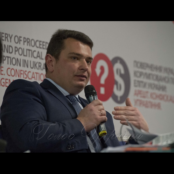 Представник Генпрокуратури Євген Єнін.15 грудня 2016 Київ. У конгрес – холлі Президент-отель відбулась ІІІ міжнародна конференція «Повернення украдених активів корумпованої політичної еліти: арешт; конфіскація; управління» – спеціалізований захід для правоохоронних органів, присвячений практичним питанням арешту, конфіскації та управління активами, одержаними від корупційних злочинів. Організатори: громадські організації Центр протидії корупції та Transparency International Україна.