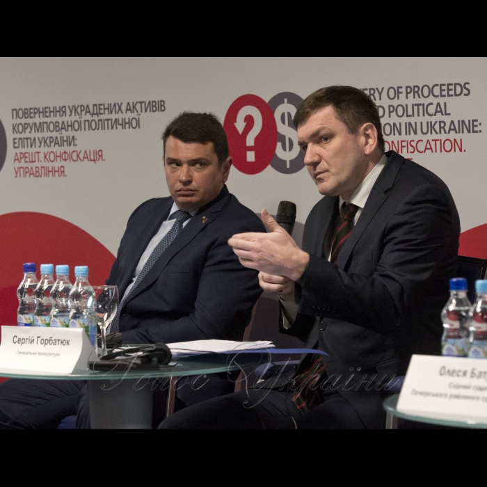 Директор Антикорупційного бюро Артем Ситник, слідчий ГПУ Сергій Горбатюк, слідчий суддя Печерського районного суду м. Київ Олеся Батрин.15 грудня 2016 Київ. У конгрес–холлі Президент-отель відбулась ІІІ міжнародна конференція «Повернення украдених активів корумпованої політичної еліти: арешт; конфіскація; управління» – спеціалізований захід для правоохоронних органів, присвячений практичним питанням арешту, конфіскації та управління активами, одержаними від корупційних злочинів. Організатори: громадські організації Центр протидії корупції та Transparency International Україна.