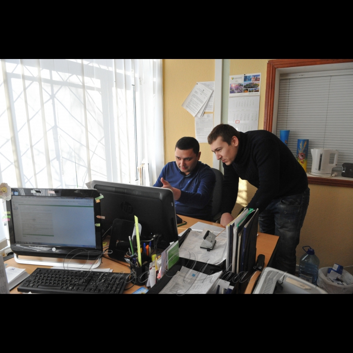 Київська обласна дирекція «Укрпошти». Працівник відділу продажу послуг Андрій Драчук, начальник відділу торгівлі Микола Черкасов