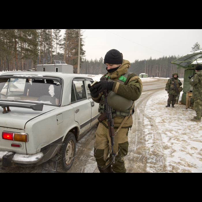 Боєць батальйону патрульної служби поліції особливого призначення «Луганськ-1» Олексій Прима.2 лютого 2017 Луганська обл. Блок-пост біля селіща Метелкіно, батальйон патрульної служби поліції особливого призначення «Луганськ-1».