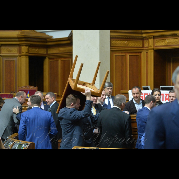 Трибуну заблокувала фракція Радикальної партії на знак протестету проти тарифів на газ для населення.