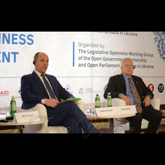 Голова Верховної Ради України Андрій Парубій, постійний координатор системи ООН в Україні Ніл Вокер.19 травня 2017 у Верховній Раді України відбувається друга Глобальна конференція законодавчої відкритості «Розбудова громадянської довіри через відкритість та залученість»