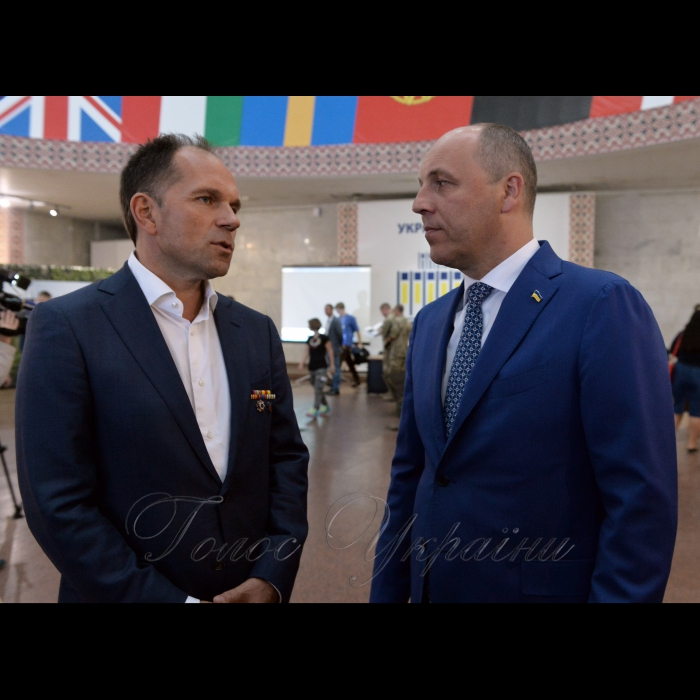Голова Верховної Ради України Андрій Парубій, Дмитро Муравський.23 серпня 2017 Київ. Український дім. Голова Верховної Ради України Андрій Парубій побував на презентації книги робіт відомого військового фотографа, ініціатора соціального проекту «Коли закінчиться війна» Дмитра Муравського.