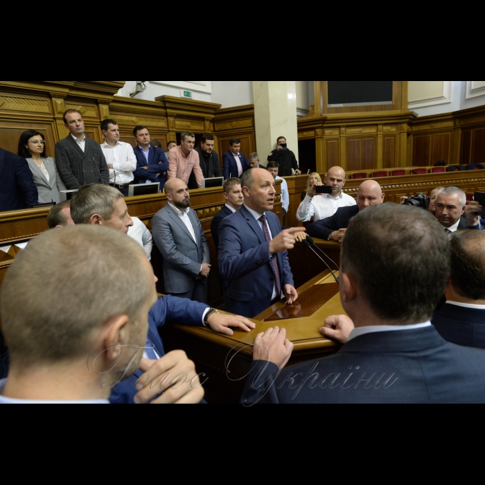 5 жовтня 2017 вечірнє пленарне засідання Верховної Ради України. Розгяд за скороченою процедурою Проекту Закону про особливості державної політики із забезпечення державного суверенітету України над тимчасово окупованими територіями в Донецькій та Луганській областях (Законопроект 7163) блокування трибуни.