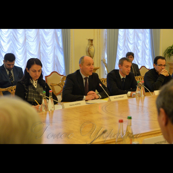 Зустріч Голови Верховної Ради України Андрія Парубія з Президентом Групи Світового банку Джимом Йонг Кімом за участі голів депутатських фракцій та груп. Гопко, Березюк