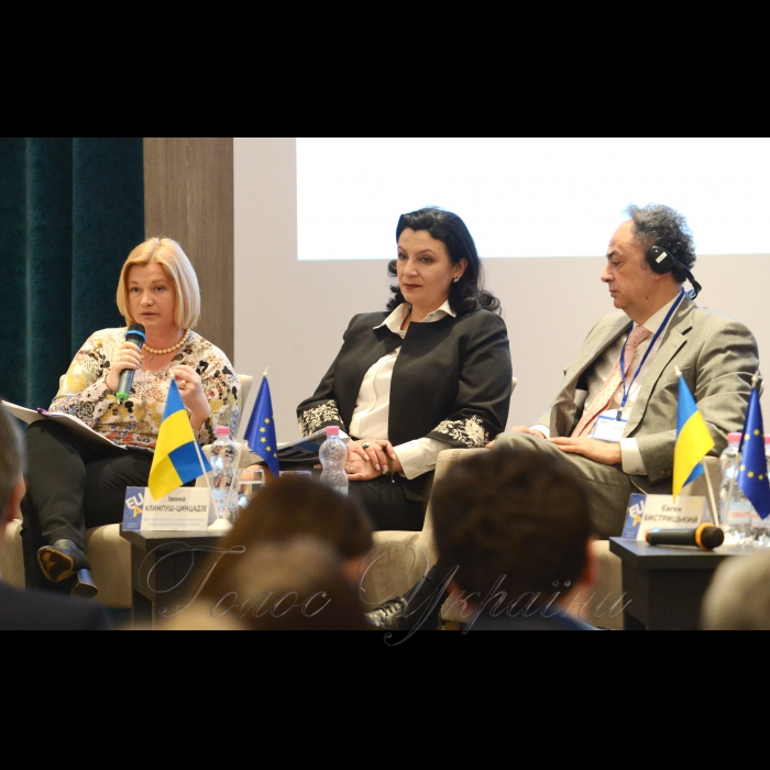 Перший заступник Голови Верховної Ради України Ірина Геращенко, віце-прем'єр-міністр з питань європейської та євроатлантичної інтеграції України Іванна Климпуш-Цинцадзе та Голова Представництва Європейського Союзу в Україні Хюґ Мінґареллі.
