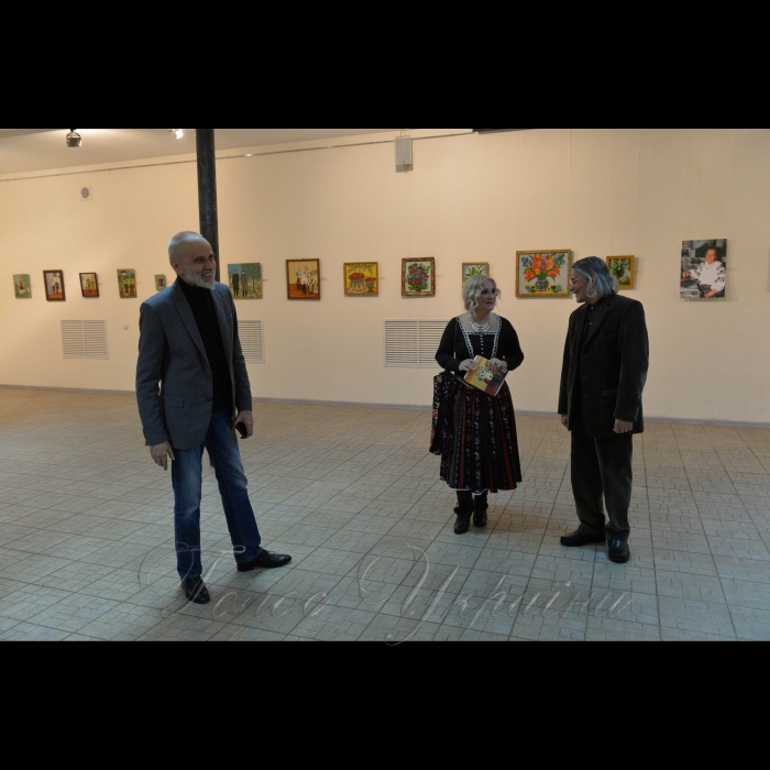 Петро Гончар – директор Музею Івана Гончара, куратор виставки, Тетяна Пошивайло – куратор виставки та Василь Перевальський – графік, народний художник України.6 березня 2018 у Києві, в Музеї Івана Гончара 6 березня відкрили виставку мисткині українського наїву Марії Нелеп.