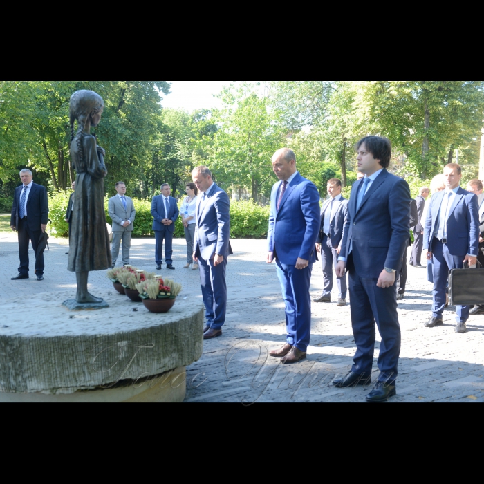 Церемонія покладання квітів до пам’ятника жертвам Голодомору. Голова Парламенту Республіки Молдова Андріана Канду, Голова Верховної Ради України Андрій Парубій, Голова Парламенту Грузії Іраклі Кобахідзе