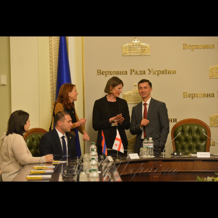 Представник Вірменії Тамар Зоделава, представник Грузії Гіві Міканадзе, перший заступник керівника апарату - керуючий справами ВР України Петро Боднар.