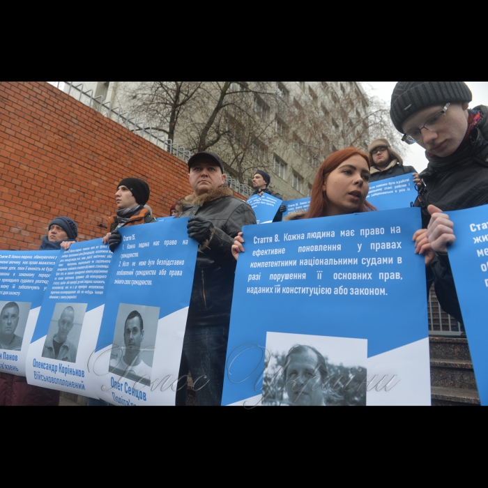 11 грудня 2018 акція під Посольством ЄС в Україні в рамках глобальної акції #SaveOlegSentsov з нагоди вручення Олегу Сенцову премії ім. Сахарова.
