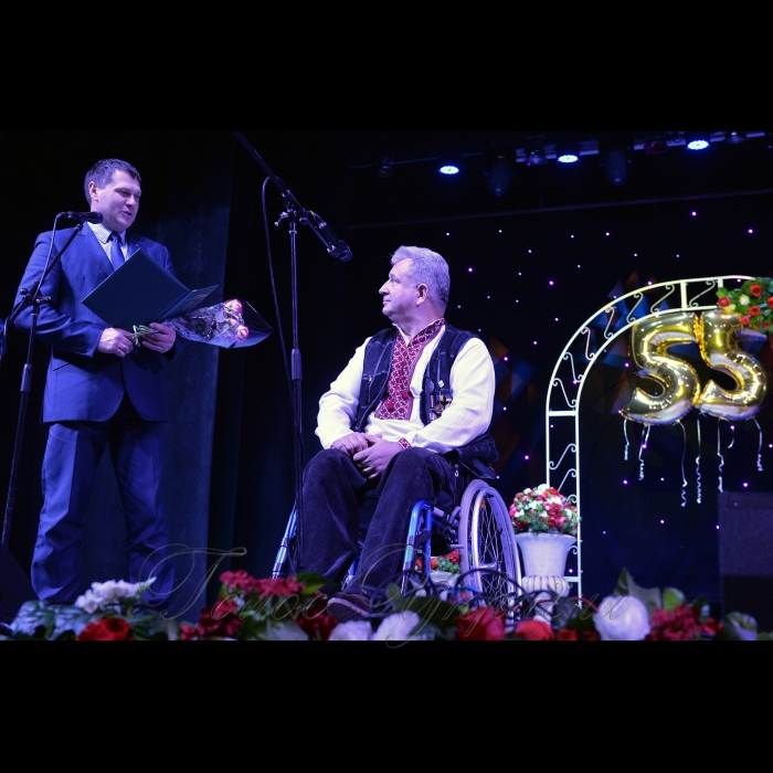 11 грудня 2018 святкування 55-річчя художника Юрія Пацана. Художник Юрій Пацан з директором департаменту соціального захисту Київського ОДА Ігорем Міщаном.