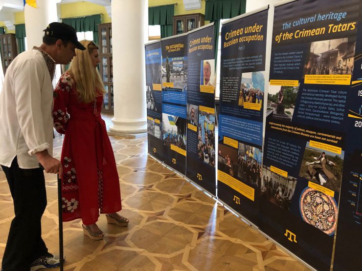Під стінами міськдержадміністрації та у колонному залі КМДА демонстрували світлини з виставки «Об'єднані прапором - #LIBERATECRIMEA».