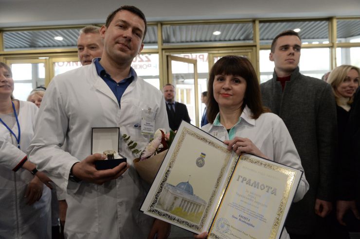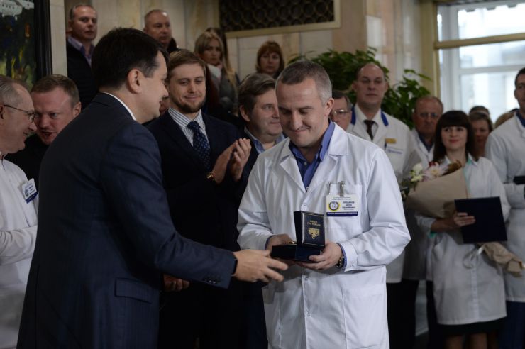Комунальний заклад "Дніпропетровська обласна клінічна лікарня ім. І.І. Мечникова" (пл. Соборна, 14). Ознайомлення з роботою закладу. Спілкування з медичним персоналом та пацієнтами закладу. Нагородження Цінними подарунками Голови Верховної Ради України.