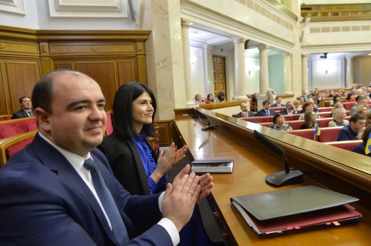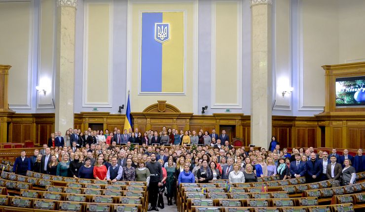 Голова Верховної Ради України Дмитро Разумков, керівництво парламента привітали колектив Апарату ВР України з Новорічними святами та вручило нагороди. Перший заступник Голови Верховної Ради України Руслан Стефанчук,