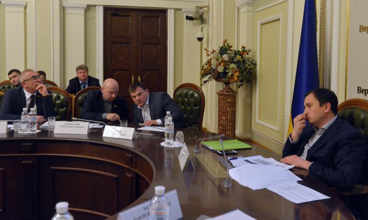 Секретар Комітету Верховної Ради України з питань аграрної та земельної політики Іван Чайківський, заступник голови Комітету Степан Чернявський, Перший заступник голови Комітету Олег Мейдич