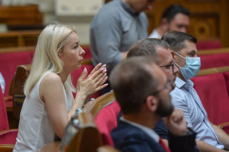 Головуючий повідомив, що позачергове засідання проводиться у зв'язку з вимогою Президента України Володимира Зеленського. Сергій Вельможний (довіра), Юлія Світлична (позафрак)