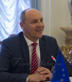 12 квітня 2018 зустріч Голови Верховної Ради України Андрія Парубія з депутатом Німецького Бундестагу Франком Штеффелем.