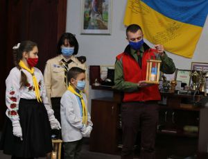 Хмельницькі пластуни доставили Вифлеємський вогонь до міської ради.