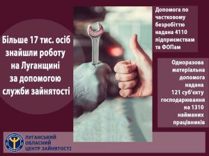Упродовж 2020 року на Луганщині за сприяння фахівців центрів зайнятості працевлаштовано 17,2 тисячі осіб.