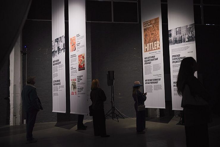 Марія Мізіна, кураторка виставкових проєктів виставкового центру «Жива пам’ять»: «Ця виставка про те, як пропаганда робить насильство можливим. Вона поєднує міжнародні й київськи джерела – від архівних плакатів до унікальних візуальних свідчень. Ми показуємо і факти і механізми пропаганди, щоб навчитися їм протистояти. Нехай ця виставка допоможе нам розпізнавати обман сьогодні – і не давати згоди на зло».