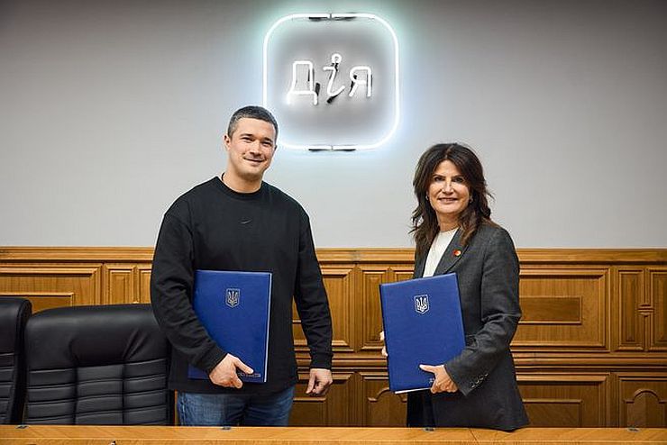 Відповідний меморандум про взаєморозуміння підписали Перший віцепрем'єр-міністр – Міністр цифрової трансформації України Михайло Федоров, президентка Mastercard у Східній Європі Ясемін Бедір та генеральна директорка Mastercard в Україні та Молдові Інга Андреєва під час зустрічі за участі радниці міністра Валерії Іонан та представників регіональної команди Mastercard.