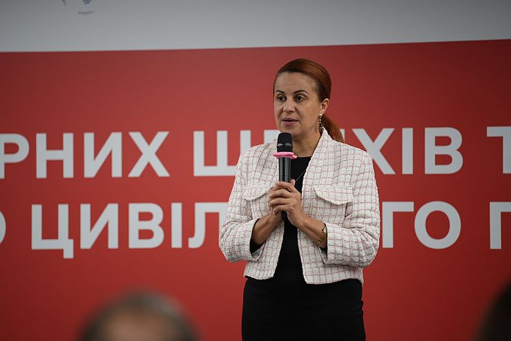 Також з вітальними словами до присутніх звернулися: голова Ради Федерації роботодавців України Дмитро Олійник, директор Helvetas в Україні Петр Баше, ветеран, голова Федерації профспілок України Сергій Бизов.