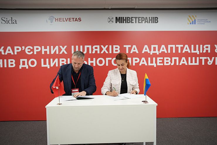 Документ підписали Міністерка у справах ветеранів Наталія Калмикова та керівник відокремленого підрозділу Helvetas Swiss Intercooperation в Україні Петр Баше.
