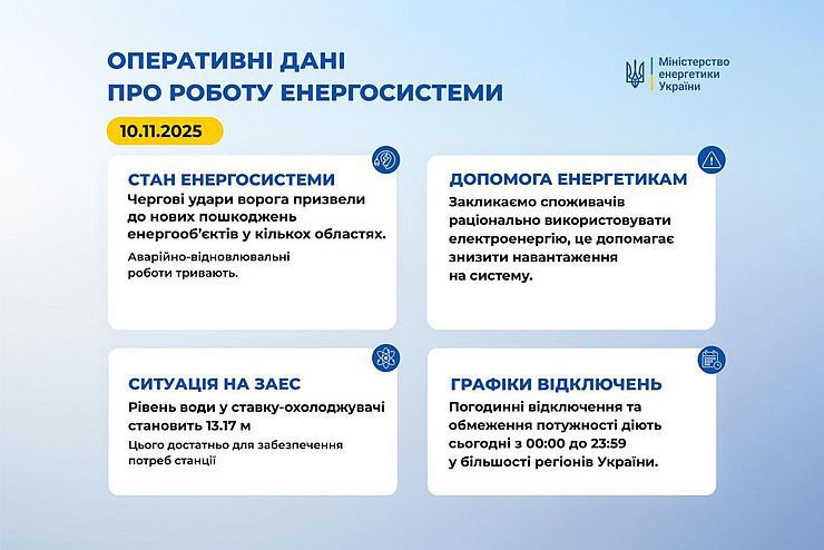 Закликаємо споживачів раціонально використовувати електроенергію протягом усього дня, особливо у пікові години споживання вранці та ввечері. Це допомагає знизити навантаження на систему.