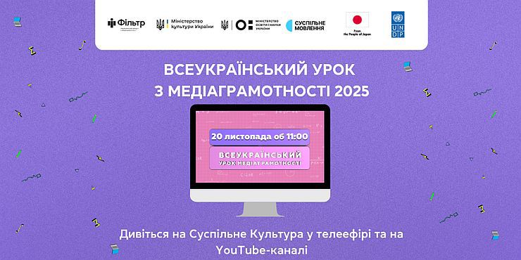 Всеукраїнський урок з медіаграмотності реалізовує національний проєкт з медіаграмотності «Фільтр» Міністерства культури та Суспільне Мовлення у партнерстві з Міністерством освіти і науки України та за підтримки UNDP Ukraine / ПРООН в Україні та фінансування уряду Японії.