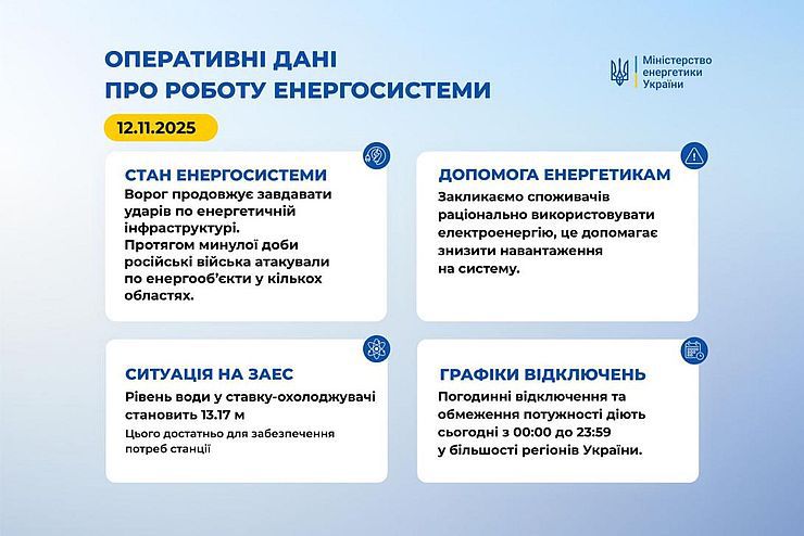 Закликаємо споживачів раціонально використовувати електроенергію протягом усього дня, особливо у пікові години споживання вранці та ввечері. Це допомагає знизити навантаження на систему.