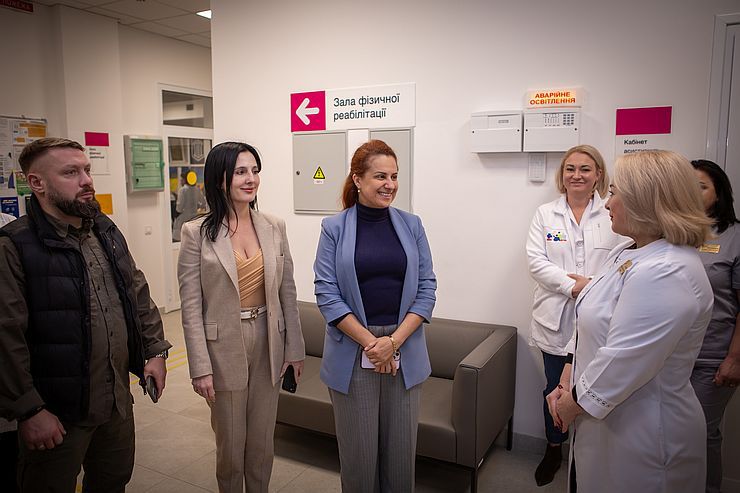 Далі керівництво Мінветеранів відвідало один з провідних реабілітаційних центрів області. Заклад працює за 13 пакетами «Програми медичних гарантій» НСЗУ та має чотири стаціонарні відділення на 122 ліжка — неврологічне, терапевтичне, хірургічне, фізичної та реабілітаційної медицини. Також функціонують стоматологічне відділення, консультативна поліклініка з більш як 20 напрямками спеціалізації. У 2025 році лікування та відновлення у центрі пройшли 637 ветеранів й ветеранок та 1 185 військослужбовців.