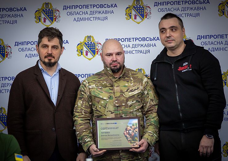 Серед тих, хто отримав сертифікат – ветеран Дмитро Драгінда. Він родом з Луганщини. До Павлограда переїхав у 2014 році. Працював на шахті, а з повномасштабним вторгненням став на захист країни. Служив у десантно-штурмовій бригаді. Залишити побратимів був вимушений через тяжке поранення, після якого переніс ампутацію, протезування та шлях відновлення.