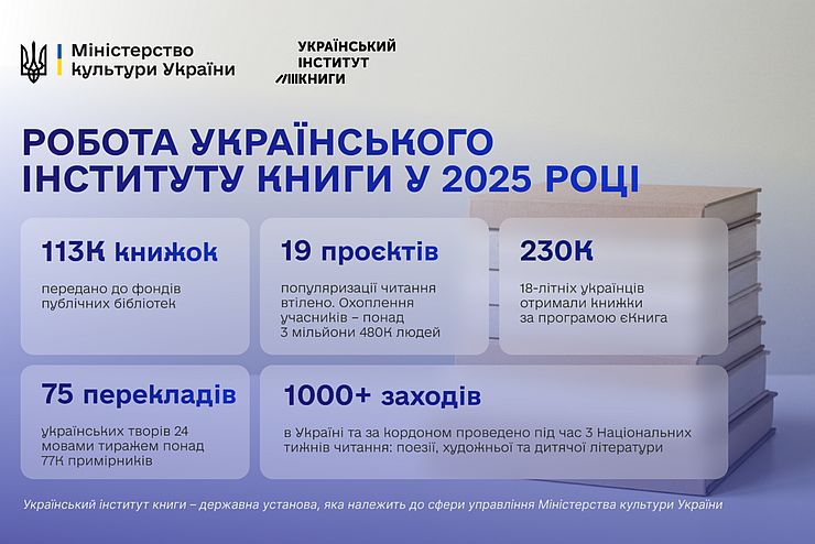 Український інститут книги втілив 19 проєктів з популяризації читання, і в імпрезах взяли участь 3 мільйони 480 тисяч людей. Проєкти відібрали на мистецьких конкурсах УІК.