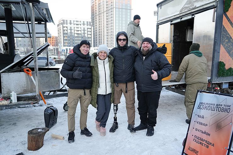 Тут можна зарядити гаджети, зігрітися чаєм, узваром або теплим бульйоном, перекусити, а також безкоштовно скористатися мобільним лазнево-пральним комплексом. Усередині – гарячий душ, пральні та сушильні машинки, мийки, розетки та все необхідне, щоб люди могли бодай частково повернути собі відчуття комфорту й гідності навіть у складних умовах.