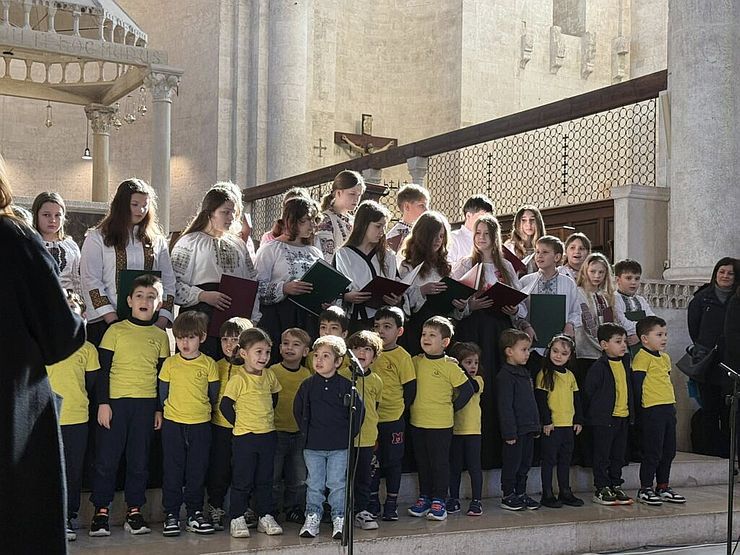 Під керівництвом диригента Миколи Воскобойнікова діти виконали українські твори про надію, силу та незламність. Через музику вони розповіли про свою країну та її боротьбу. У залі зібралися близько 400 українських та італійських дітей.
