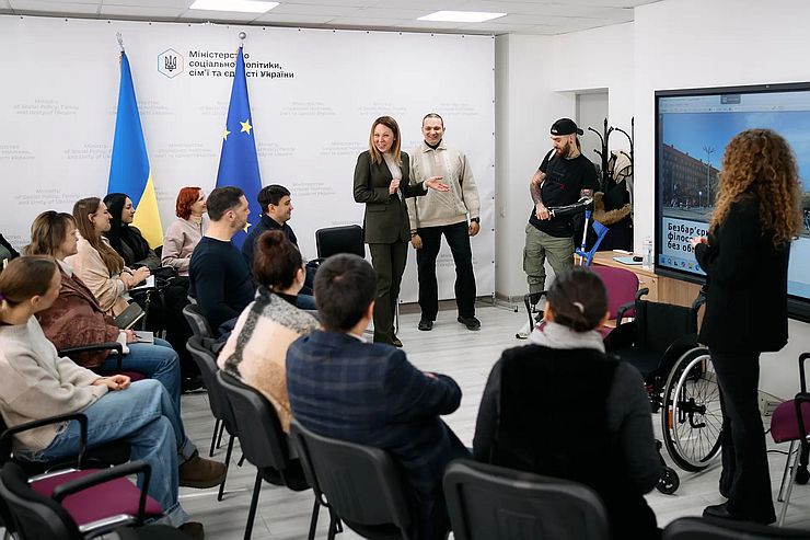 Працівники Міністерства, а також Пенсійного фонду, Національної соціальної сервісної служби, Державної служби у справах дітей та Фонду соціального захисту осіб з інвалідністю ознайомилися з базовими поняттями безбар’єрності, визначенням цільових аудиторій, нормативно-правовим регулюванням, видами бар’єрів та практичними шляхами їх подолання.