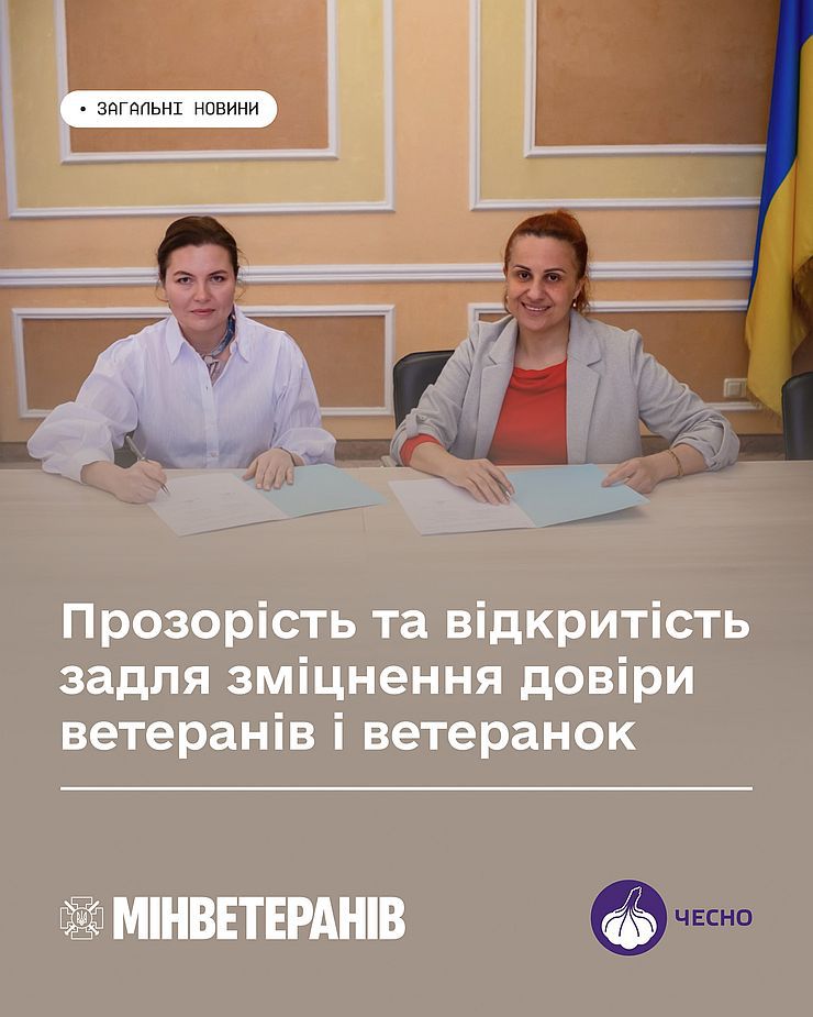 Сторони уклали Меморандум, який визначає стратегічні напрями спільної роботи. Документ підписали Міністерка у справах ветеранів України Наталія Калмикова та Голова ГО «Рух ЧЕСНО» Віта Думанська.