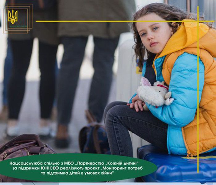 Нацсоцслужба спільно з МБО «Партнерство „Кожній дитині”» за підтримки UNICEF Ukraine реалізують проект «Моніторинг потреб та підтримка дітей в умовах війни».
